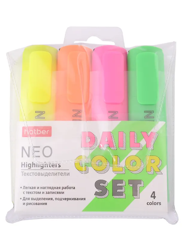 Текстовыделители 04цв "NEO neon" клиновидный пишущий узел, блистер, Hatber