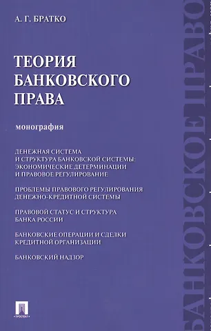 В монографии доктора юридических наук, профессора Братко Александра Григорьевича представлена новая теория банковского права, которая является результатом его многолетних исследований в этой области науки и практики.