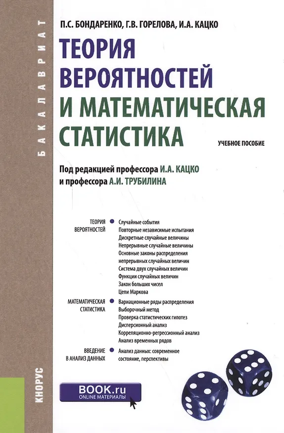 Рассмотрены основные вопросы теории вероятностей и математической статистки в соответствии с программой подготовки бакалавров. Для углубленного изучения курса рассмотрены приложения теории вероятностей в компьютерных науках (computer science), а также для отражения современных тенденций обработки данных, в известной мере опирающихся на идеологию теории вероятностей и математической статистики, дан обзор современных направлений анализа данных в контексте развития общества и информационных технологий.