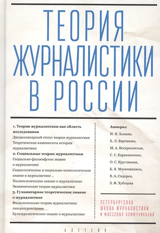 Коллективная монография открывает книжную серию "Петербургская школа журналистики и массовых коммуникаций", подготовленную учеными СПбГУ. Авторы ставят перед собой задачу обозреть и обобщить материал, накопленный теоретиками журналистики. Что представляет собой сегодня теория журналистики в России? Как она связана с мировыми тенденциями в изучении журналистики и медиасферы? В чем заключается ее национально-культурное своеобразие? Какие темы и проблемы разрабатываются особенно интенсивно и последовательно? Кто внес наиболее заметный вклад в пополнение научного капитала? Какие научные проблемы нашли адекватное решение и какие стоят на повестке дня? По каким путям будет двигаться теория журнали