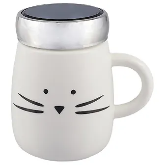 Термокружка с зеркальной крышкой Мордочка с усами (керамика) (350 мл) (12-07501-CH089-3)