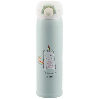 Термос «Котик-единорог», объем 500 миллилитров. Внутри термос изготовлен из нержавеющей стали, а сверху из пластика, поэтому рукам не будет горячо держать его. Красивый и удобный термос, пригодится для детей и подростков в поездках. У термоса имеется очень удобная крышка, из которой сложно пролить жидкость. Если в термос вечером залить чаек кипятком, утром он будет еще горячий. Температуру содержимого термос держит долго.