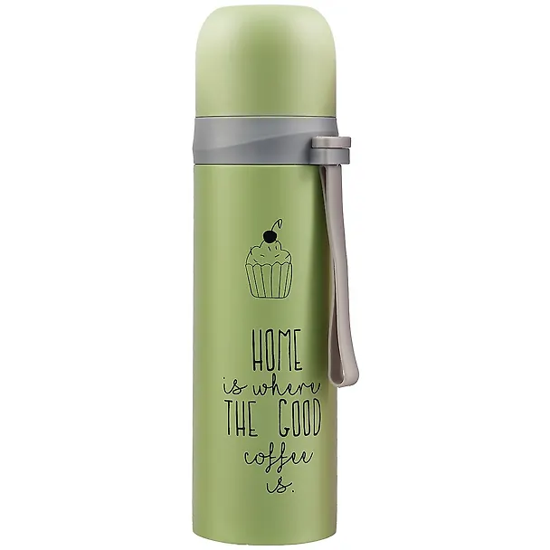 Термос «Coffee» порадует всех любителей этого бодрящего напитка. Он украшен милым принтом, изящной надписью и приятной матовой текстурой..