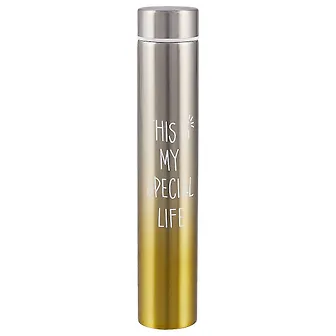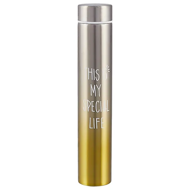 Термос «Металлический градиент» понравится тем, кто любит одновременно оригинальный и простой дизайн. Посмотрите, как необычно он выглядит! Термос вертикальный и тонкий, ёмкость совсем небольшая – всего 280 мл, чуть меньше обычной кружки. Зато он не займёт много места в сумке. Металл снаружи переливается градиентом от серебра к золоту – такой термос не останется незамеченным.