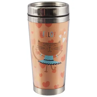 Термостакан «Кошечка» украшен изображением кошки в нарядном платье. Посмотрите, разве она не прелесть?