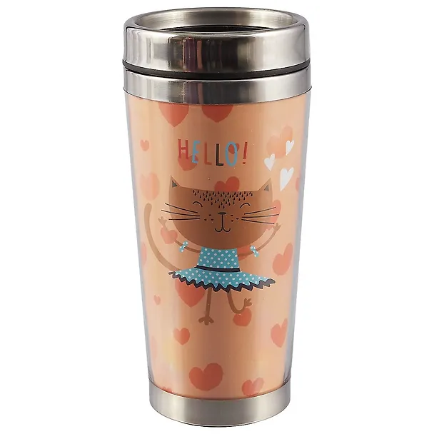 Термостакан Кот с цветными сердечками (400 мл) (пКТ Ластик)