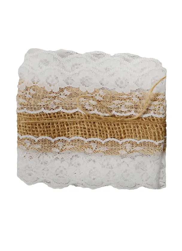Тесьма джут с двойным кружевом, 9 см* 90 см, в пакете с подвесом, экрю (11-00530-22)