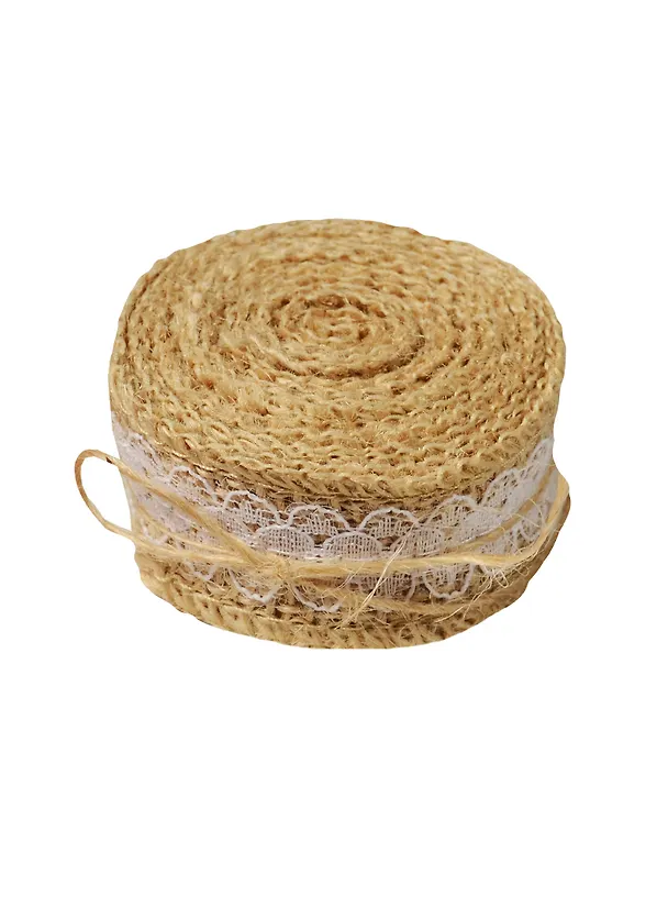 Тесьма джут с кружевом 2.6 см* 1.8 м, в пакете с подвесом, экрю (11-00530-21)