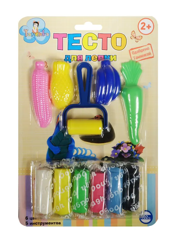 Тесто для лепки Овощи (2055) (6 цветов) (5 инструментов) (102гр) (2+) (упаковка)