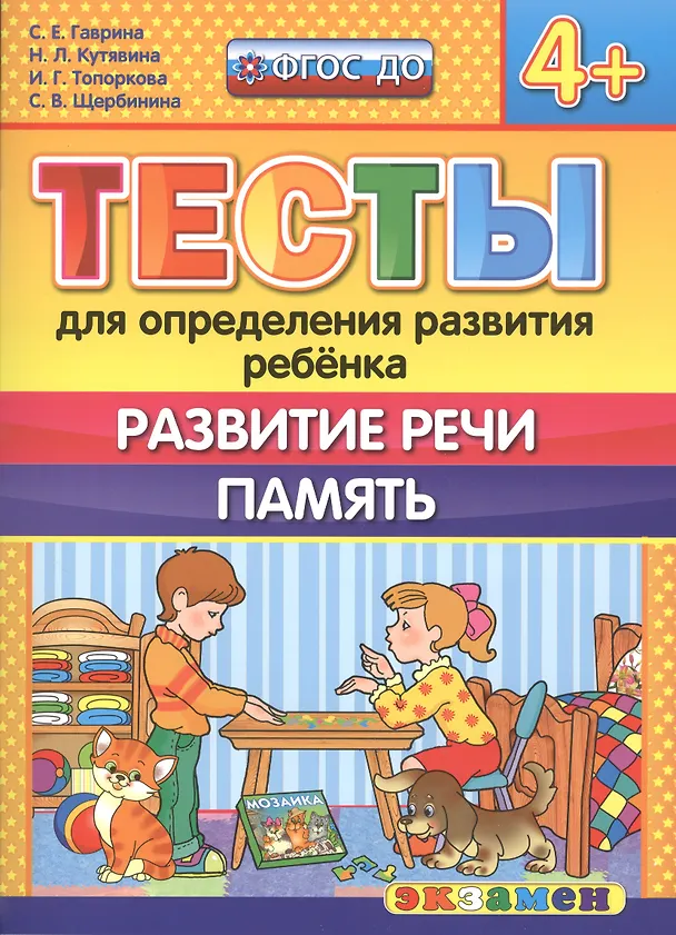 Тесты для определения развития ребенка. Развитие речи. Память. 4+. ФГОС ДО