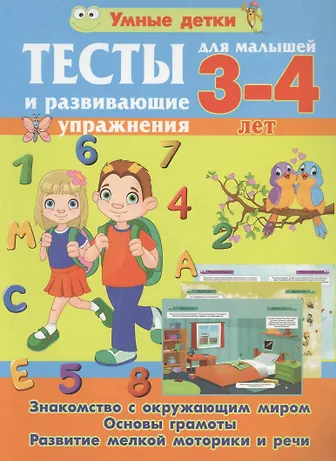 Тесты и развивающие упражнения для малышей 3-4 лет. Знакомство с окружающим миром. Основы грамоты. Развитие мелкой моторики и речи