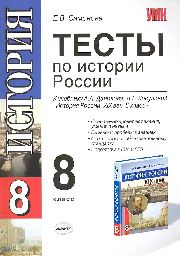 Елена Симонова «Тесты по истории России: 8 класс: к уч. А.А.Данилова, Л.Г.Косулиной "История России, XIX век. 8кл."» и выбрать удобный способ его получения: самовывоз, доставка курьером