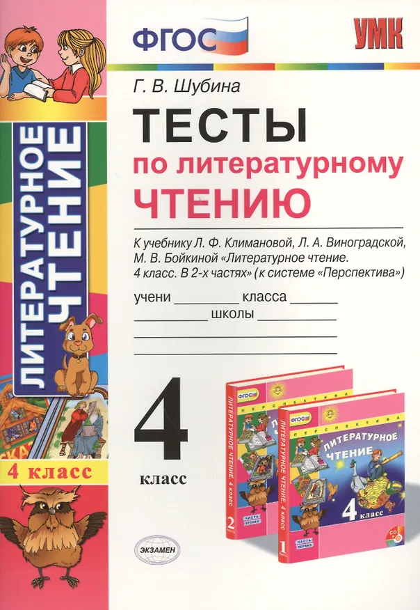 Тесты по литературному чтению : 4 класс. К учебнику Л.Ф. Климановой, Л.А. Виноградской, М.В. Бойкиной. Перспектива. ФГОС (к новому учебнику), 3-е изд.