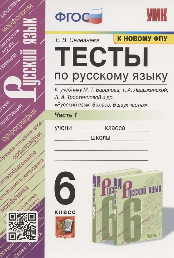Тесты по русскому языку. 6 класс. Часть 1. К учебнику М.Т. Баранова, Т.А. Ладыженской, Л.А. Тростенцовой и др. "Русский язык. 6 класс. В двух частях" (М.: Просвещение)