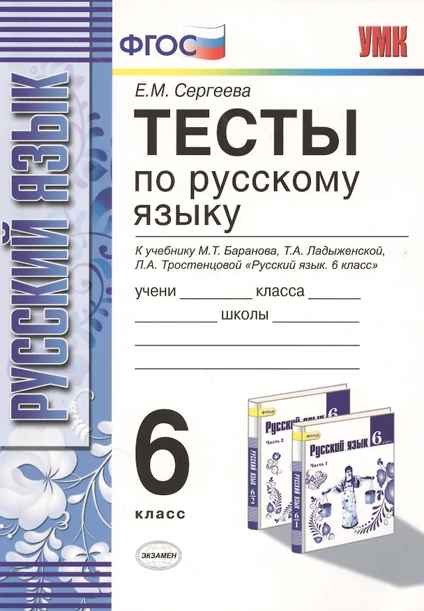 Тесты по русскому языку: 6 класс: к учебнику М.Т. Баранова и др. "Русский язык. 6 класс" / 8-е изд., испр. и доп.