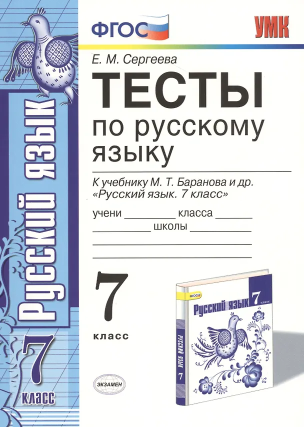 Тесты по русскому языку. 7 класс. К учебнику М. Т. Баранова и др. "Русский язык. 7 класс"