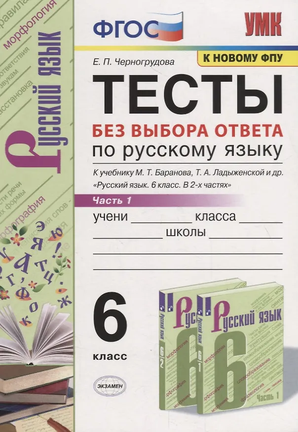 Тесты по русскому языку без выбора ответа. 6 класс. Часть 1 (к учебнику М.Т. Баранова и др., М.: Просвещение)