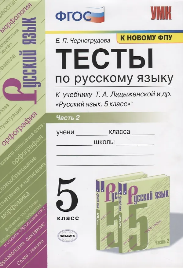 Тесты по русскому языку. Часть 2. К учебнику Т.А. Ладыженской и др. "Русский язык. 5 класс". 5 класс