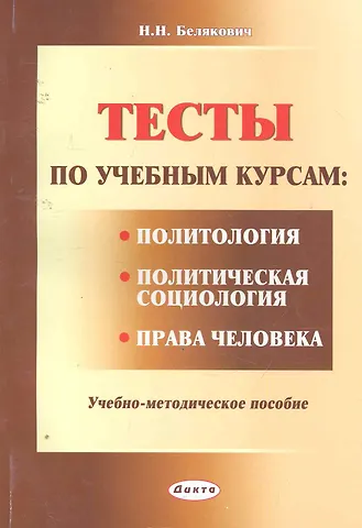 Тесты по учебным курсам: "Политология", "Политическая социология", "Права человека": учеб.-метод. пособие / (мягк). Белякович Н. (Юрайт)
