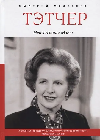 Имя Тэтчер давно стало легендой. Вокруг её личности до сих пор не утихают споры. Родившись в обычной семье, не имея ни связей, ни финансовой поддержки, она смогла возглавить консервативную партию и три раза подряд избиралась на пост премьер-министра. Но каких бы вершин ни удавалось достичь Маргарет, в первую очередь она всегда оставалась женщиной. Мифы и факты о "железной леди", её семейная и личная жизнь в бестселлере Дмитрия Медведева "Тэтчер: неизвестная Мэгги".