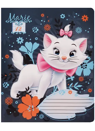 Тетрадь 12 листов клетка "Marie Cat", выборочный УФ, Disney. В ассортименте, без возможности выбора