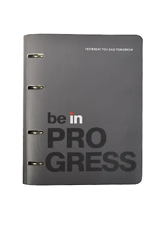 Тетрадь 120л кл. "Be in progress" на кольцах, подложка иск.кожа, скругл.углы, IN FOLIO