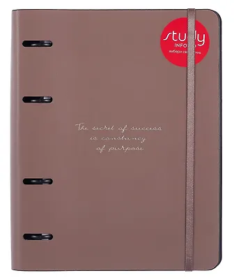 Тетрадь 120л кл. "Quote", какао, на кольцах, сменный блок, тиснение фольгой белое золото, обложка кожзам