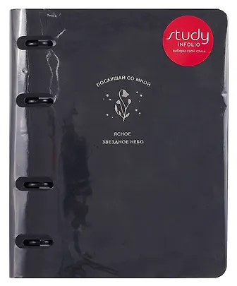 Тетрадь 120л кл. "Thoughts", черный, на кольцах, тиснение фольгой, обложка кожзам