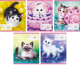 Тетрадь 12л кл. "Angel eyes.Волшебные котята" выб.лак., блестки, мел.картон,ассорти, Unnika