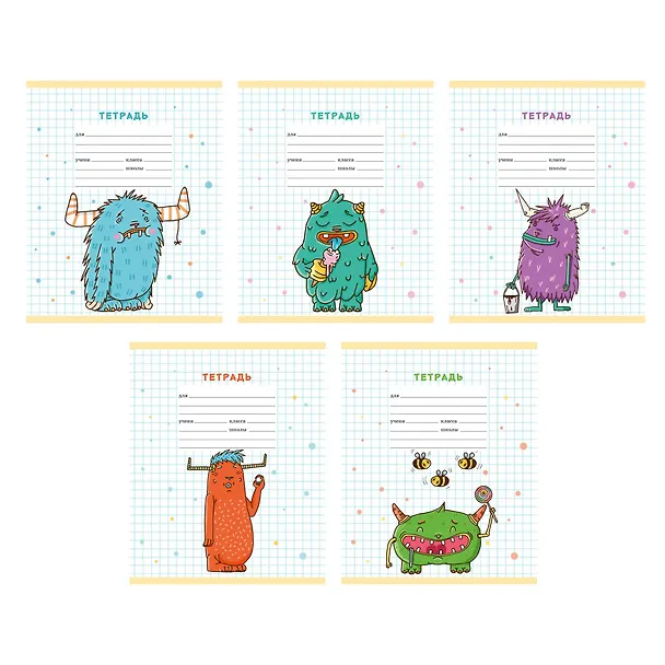 Тетрадь 12л круп.кл. "Монстрики" мел.картон, офсет 60г/м2
