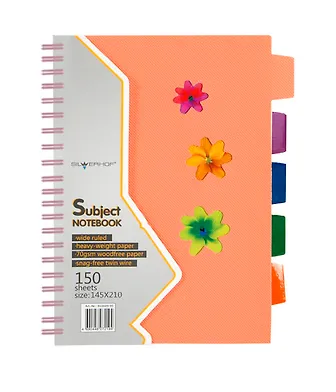 Тетрадь 150листов клетка "WHITE/ORANGE CONCEPT" евроспираль, пластиковая обложка, вырубка, цветовые разделители, отрывной перфоратор, ассорти, Silwerhof