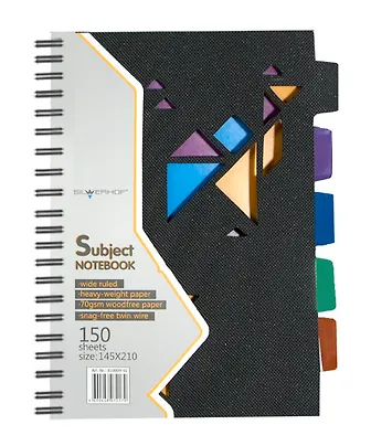 Тетрадь 150листов линейка "BLACK/BLUE CONCEPTT" евроспираль, пластиковая обложка, вырубка, цветовые разделители, отрывной перфоратор, ассорти, Silwerhof