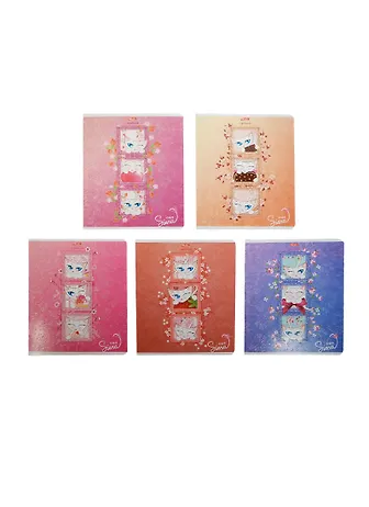 Тетрадь - 18 листов клетка, "Siena Cat", мелованный картон, блёстки, офсет, ассорти, Hatber