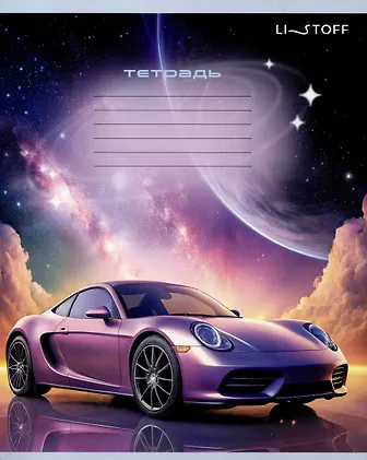 Тетрадь 24л лин. "Машина мечты" мел.картон, выб.лак, офсет 60г/м2, поля, ассорти