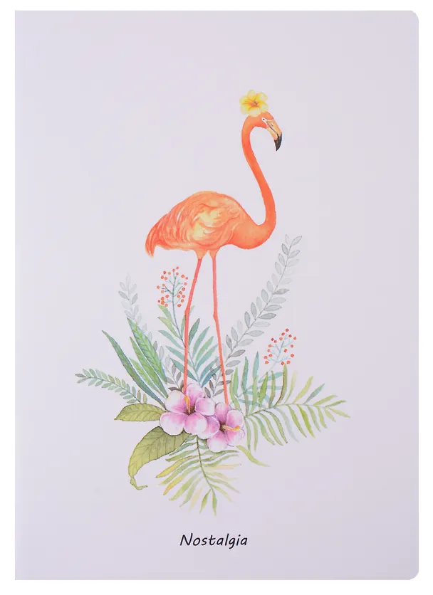 Мне очень понравилась тетрадь. У неё красивая плотная обложка с милым дизайном. Фламинго как будто нарисованы акварелью, тетрадь в линейку, так что подойдёт для определённых уроков или пар
