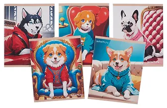 Тетрадь 40л лин. "Уютные собачки" мел.картон, поля, ассорти