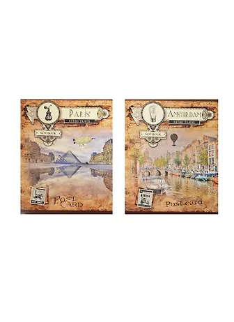Тетрадь 48л кл. "Путешествие во времени (города)" мел.картон, выб.лак, блестки "Золото", ассорти, Unnika