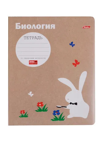 Тетрадь 48л кл. ТЕМА "Белый кролик" Биология, мел.картон, скругл.углы, интерактивн.справочн.информация