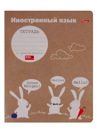 Тетрадь 48л кл. ТЕМА "Белый кролик" Иностранный язык, мел.картон, скругл.углы, интерактивн.справочн.информация