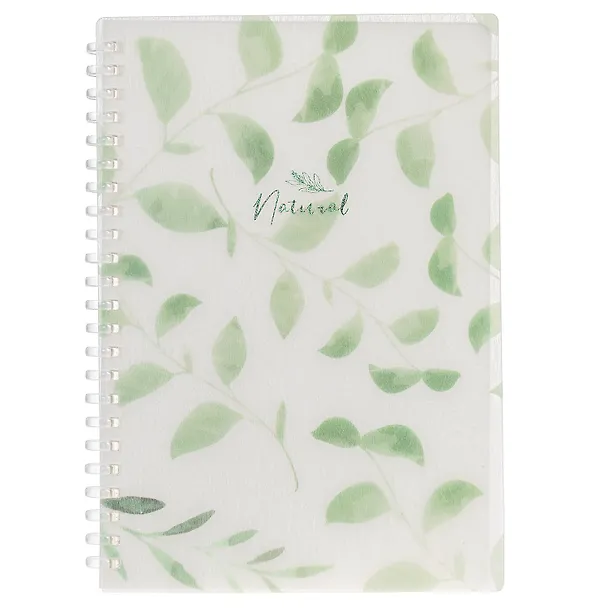 Дизайн коллекции "NATURAL" – это лёгкие, воздушные природные мотивы в сочетании с оригинальной текстурой, имитирующей дорогую рисовую бумагу.Тетрадь A5 формата (145х208 мм) серии NATURAL LEAVES, 80 листов. Предназначена для разных записей, подойдет для старшей школы, вуза, дома и офиса. Пластиковая прозрачная обложка с печатью и необычной текстурой, напоминающей рисовую бумагу, фольгированное тиснение, скругленные уголки.Мягкая прозрачная спираль обеспечивает максимальный комфорт руке во время письма, листы надежно зафиксированы и не выпадают. Тонированный внутренний блок в клетку из импортной бумаги высокого качества, плотность – 80 г/м. Титульный и последний лист без линовки, не просвечива
