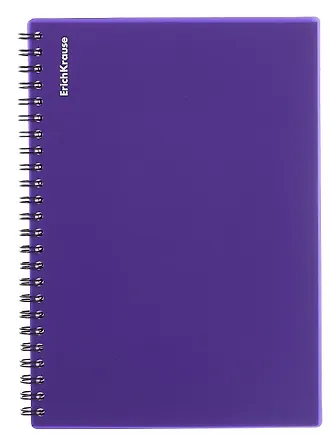 Тетрадь общая формата А5 (148x210 мм). Обложка из высококачественного износостойкого пластика с фактурой "софт-тач". В блоке 80 листов в клетку. Бумага офсетная плотностью 60 г/м2. Цвет линовки - синий. Скругленные уголки обложки. Тип скрепления - спираль.