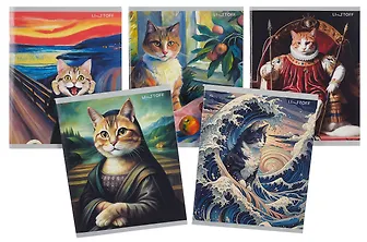 Котики в искусстве - беспроигрышный вариант, так как все любят котиков и искусство. Я поражена качеством принта - такая четкая и яркая картинка и такие милые коты. Хочется скупить все обложки, которые есть в ассортименте. Внутри вполне обычная клетка и красные поля. Бумага белая, а линовка бледная, но это хорошо, линии не ребят в глазах и не вызывают дискомфорт.