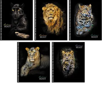 Тетрадь 96 листов в клетку "Ночные хищники" евроспираль, металлизированная пленка, ассорти, Unnika