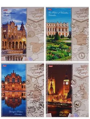 Тетрадь 96л кл. Путешествие в Европу мел.картон, матов.ламинация, 3D фольга, красн.поля, ассорт