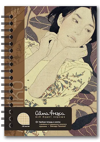 Тетрадь в твердом переплете на спирали "Amiko. Девушка из кондитерской" не только удобна в использовании, но и призвана подчеркнуть индивидуальность и яркий образ своей хозяйки, Большого формата, она дает необходимый простор для воображения, Твердая обложка обтянута тканевым покрытием с дизайном от современного японского художника Икенага Ясунари, Внутренний блок выполнен из высококачественной офсетной бумаги в клетку коричневого цвета, В качестве полей выступают надписи на японском языке, Размер: 20,5 см х 28,5 см х 1,5 см, Количество листов: 120, Материал: бумага, картон, металл.