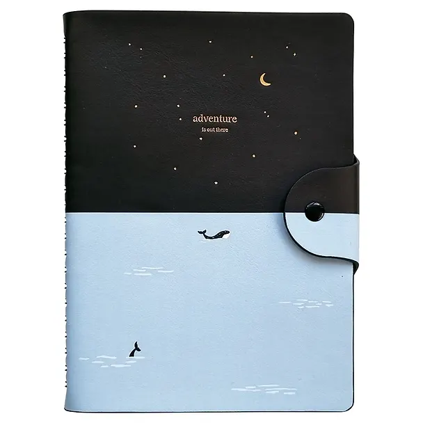 Тетрадь А5 96л кл. "Adventure" бежевый, иск.кожа, мягк.переплет, тисн.фольгой, полускр.спираль, кнопка
