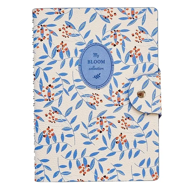 Тетрадь А5 96л кл. "Diary" голубой, иск.кожа, мягк.переплет, полускр.спираль, нашивка с блинт.тиснением, кнопка