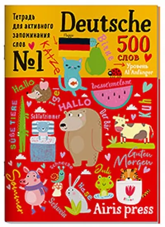 Рабочая тетрадь предназначена для активного запоминания немецких слов. В данной тетради подобраны 500 слов, соответствующие уровню А1. Для быстрого запоминания слова сгруппированы по темам. На каждой странице -- новая тема и небольшой диалог. Один из клапанов обложки отрезается и используется как закладка. Закрывая закладкой поочередно слова на немецком и русском языке, удобно прорабатывать лексику и проверять, насколько хорошо усвоена тема. Можно самостоятельно оценить свою работу и наклеить в квадратик внизу страницы подходящую наклейку. Лист с наклейками вложен в тетрадь.