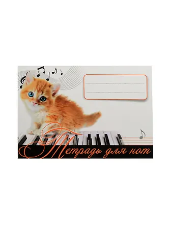 Тетрадь для нот 16л А5 "Котенок Рыжик" горизонтальная, скрепка, Питер Пресс