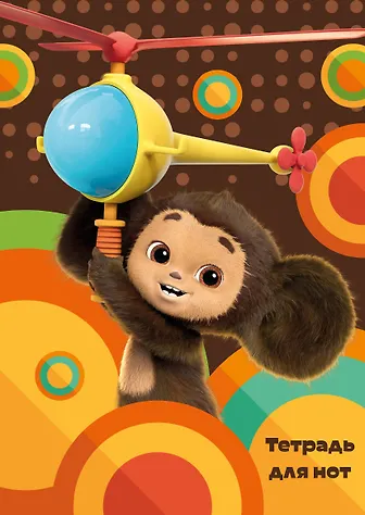 Тетрадь для нот 24л А4 "Чебурашка на вертолете" вертикальная, скрепка